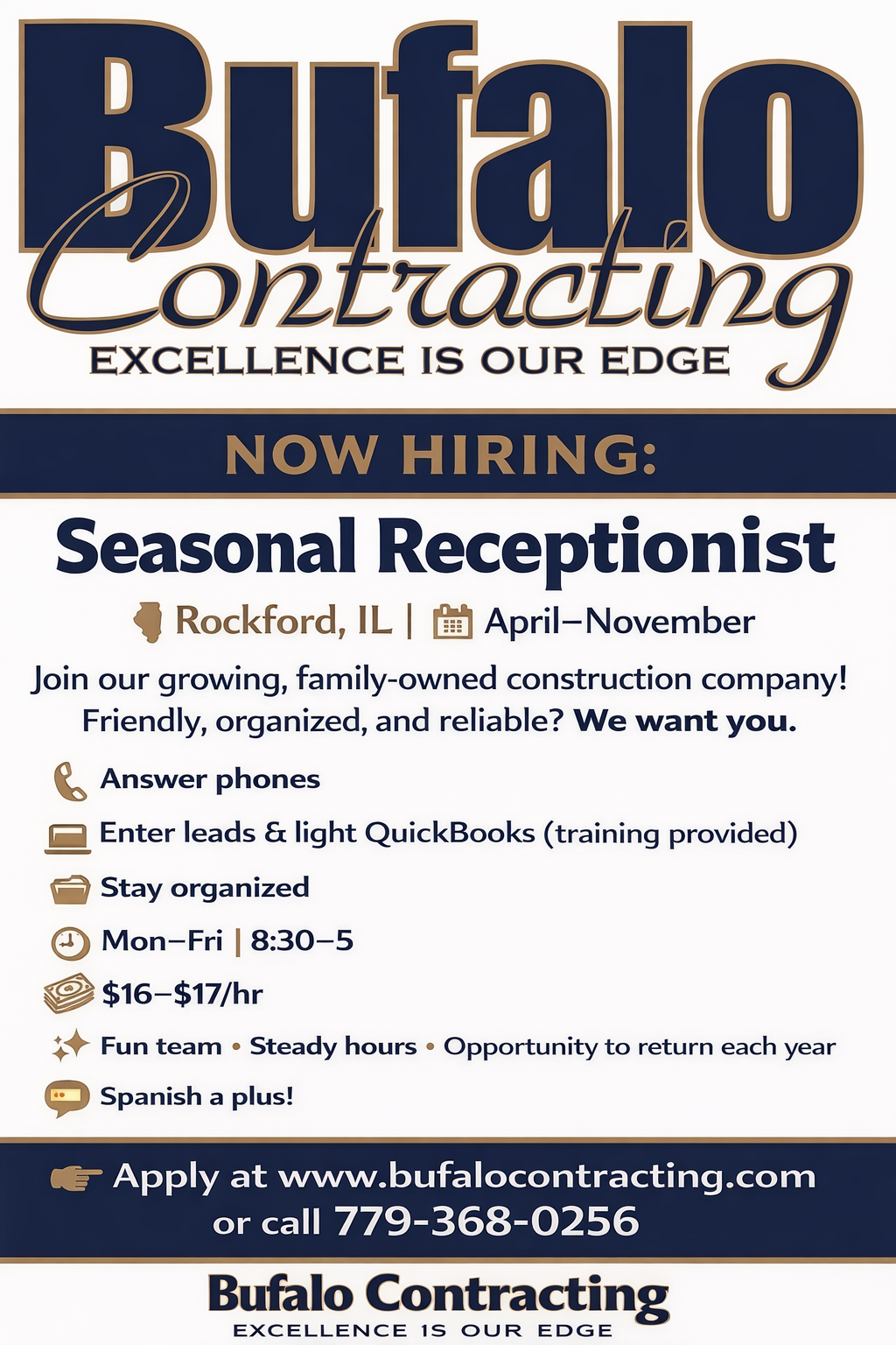 Use the form above to submit your application or give us a call at (779) 368-0256
