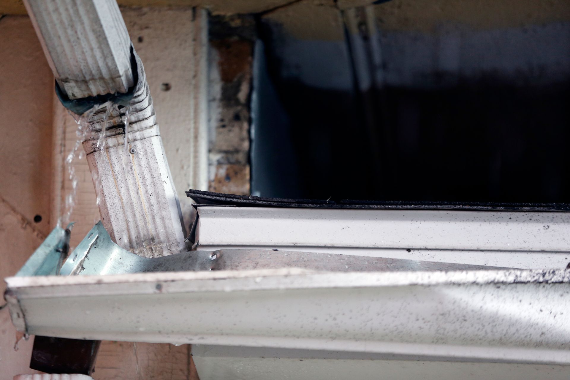Downspouts pull away when brackets loosen, fasteners corrode, or the gutter system shifts due to ice or debris weight. Re-securing with appropriate hardware restores proper alignment and drainage.